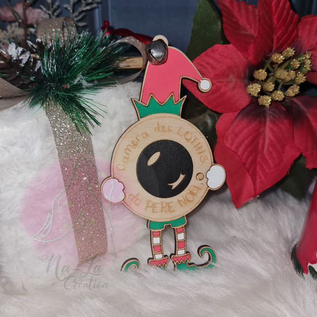 Voici mon lutin caméra en bois, gravé et découpé dans mon atelier… et surtout prêt à devenir le meilleur allié des parents ! Avec sa petite caméra, il « surveille » et rappelle gentiment aux enfants que le Père Noël garde un œil sur eux. Une déco mignonne… mais redoutablement efficace pour que tout le monde se tienne sage jusqu’au grand soir 😄