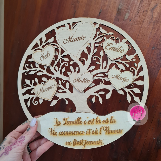 Imaginez le sourire de votre maman, votre grand-mère ou vos parents en découvrant cet arbre de vie unique, un cadeau qui symbolise l'amour et les liens familiaux. Chaque cœur gravé représente un membre de la famille, avec son prénom délicatement inscrit, un symbole de l'unité et de la force de votre clan.