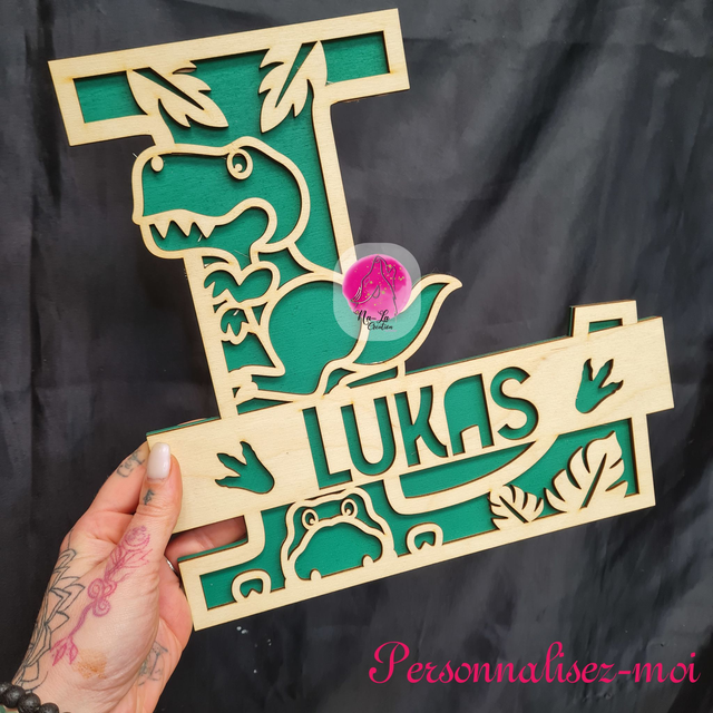 Vous cherchez une idée cadeau originale et décorative pour la chambre de votre enfant ? Optez pour un monogramme mural personnalisé avec son prénom et un thème dinosaure ! Un cadeau qui fera sensation.